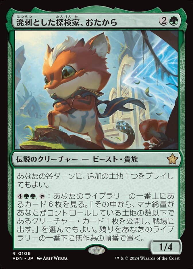 | Rules | You may play an additional land on each of your turns. , : Look at the top six cards of your library. You may reveal a creature card with mana value less than or equal to the number of lands you control from among them and put it onto the battlefield. Put the rest on the bottom in a random order. |