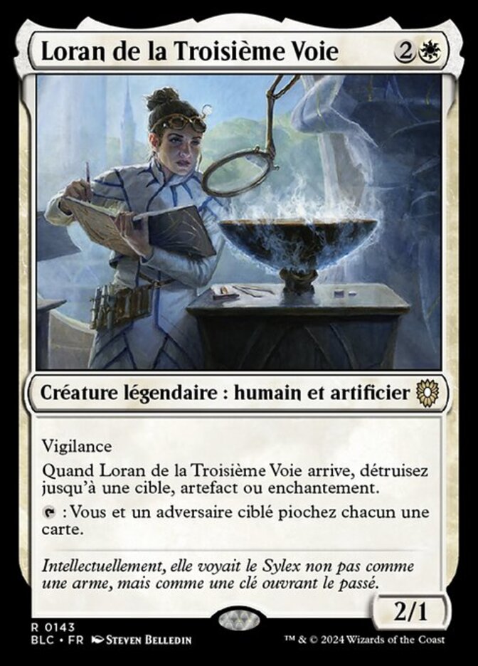 | Rules | Vigilance When Loran of the Third Path enters the battlefield, destroy up to one target artifact or enchantment. : You and target opponent each draw a card. |