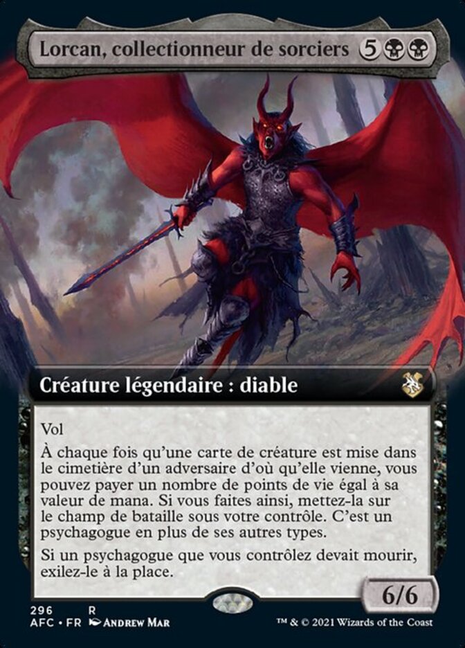 | Rules | Flying Whenever a creature card is put into an opponent's graveyard from anywhere, you may pay life equal to its mana value. If you do, put it onto the battlefield under your control. It's a Warlock in addition to its other types. If a Warlock you control would die, exile it instead. |