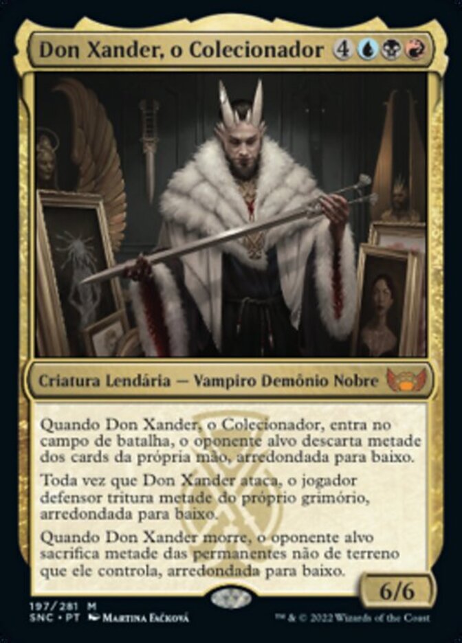 | Rules | When Lord Xander, the Collector enters the battlefield, target opponent discards half the cards in their hand, rounded down. Whenever Lord Xander attacks, defending player mills half their library, rounded down. When Lord Xander dies, target opponent sacrifices half the nonland permanents they control, rounded down. |