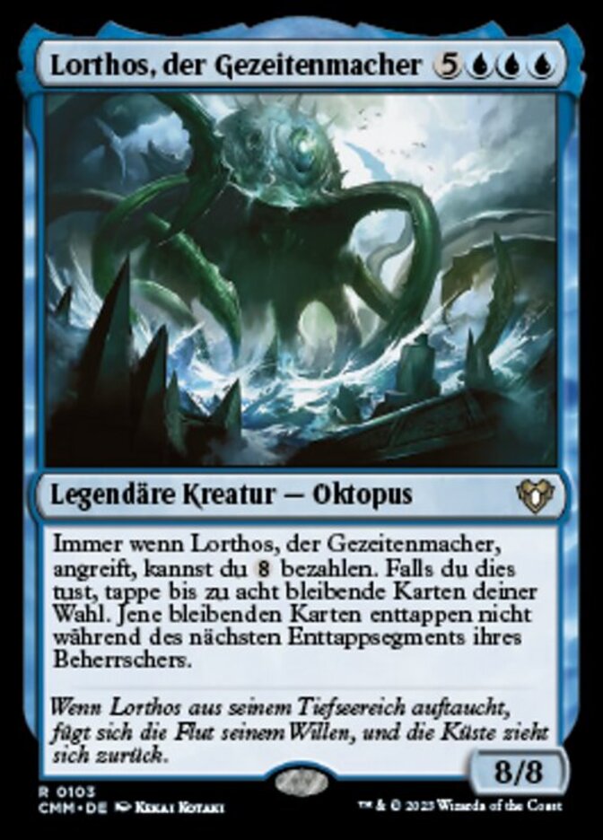 | Rules | Whenever Lorthos, the Tidemaker attacks, you may pay . If you do, tap up to eight target permanents. Those permanents don't untap during their controllers' next untap steps. |