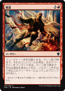 | Rules | Gain control of target creature until end of turn. Untap that creature. It gains haste and menace until end of turn. (A creature with menace can't be blocked except by two or more creatures.) |