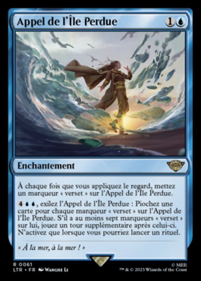 | Rules | Whenever you scry, put a verse counter on Lost Isle Calling. , Exile Lost Isle Calling: Draw a card for each verse counter on Lost Isle Calling. If it had seven or more verse counters on it, take an extra turn after this one. Activate only as a sorcery. |