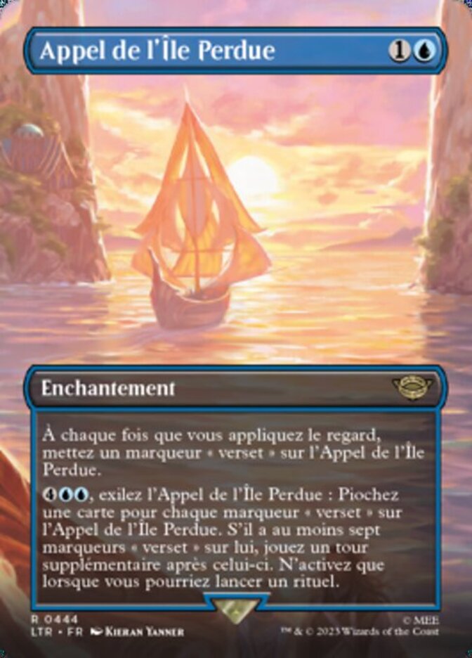 | Rules | Whenever you scry, put a verse counter on Lost Isle Calling. , Exile Lost Isle Calling: Draw a card for each verse counter on Lost Isle Calling. If it had seven or more verse counters on it, take an extra turn after this one. Activate only as a sorcery. |