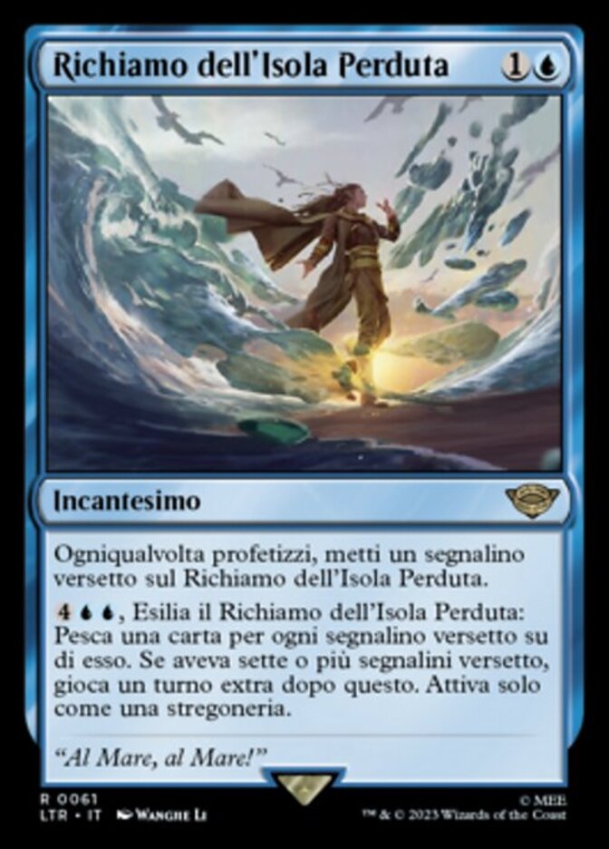 | Rules | Whenever you scry, put a verse counter on Lost Isle Calling. , Exile Lost Isle Calling: Draw a card for each verse counter on Lost Isle Calling. If it had seven or more verse counters on it, take an extra turn after this one. Activate only as a sorcery. |