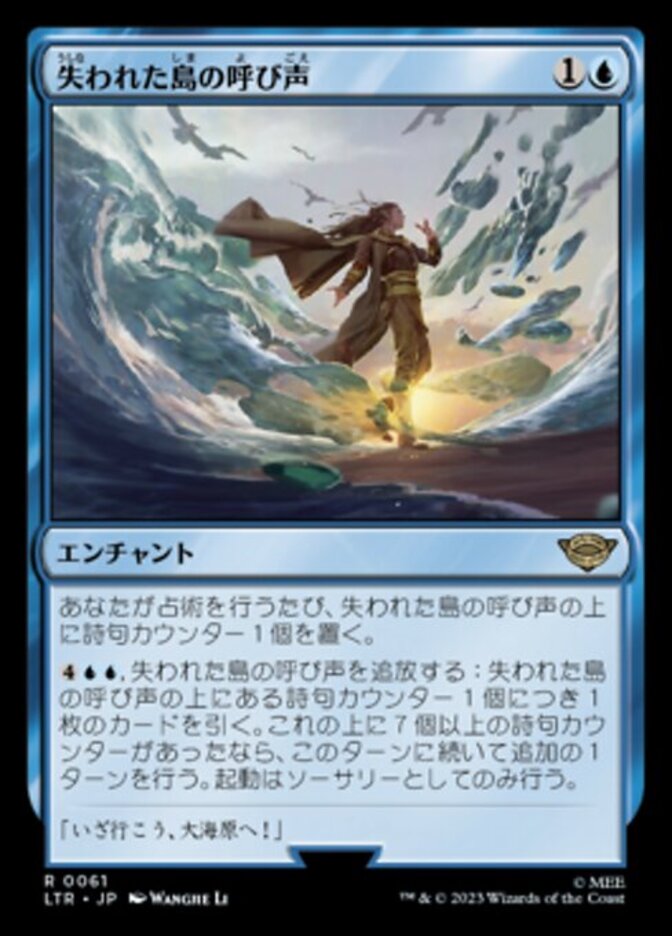 | Rules | Whenever you scry, put a verse counter on Lost Isle Calling. , Exile Lost Isle Calling: Draw a card for each verse counter on Lost Isle Calling. If it had seven or more verse counters on it, take an extra turn after this one. Activate only as a sorcery. |