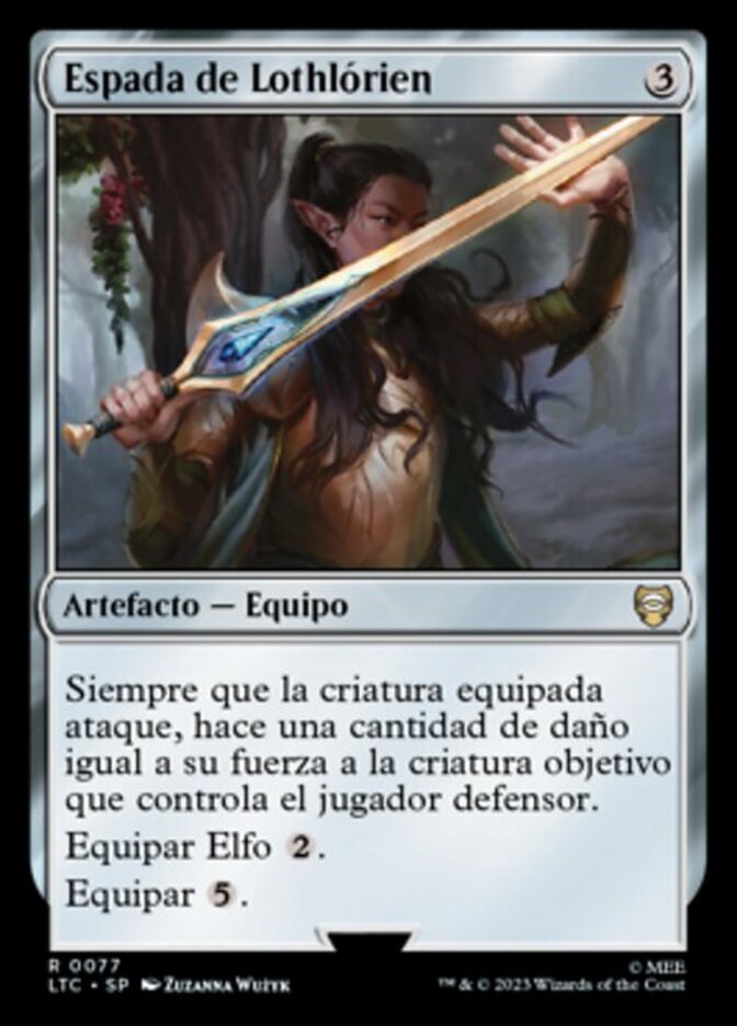 | Rules | Whenever equipped creature attacks, it deals damage equal to its power to target creature defending player controls. Equip Elf Equip |