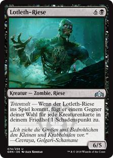 | Rules | Undergrowth — When Lotleth Giant enters the battlefield, it deals 1 damage to target opponent for each creature card in your graveyard. |
