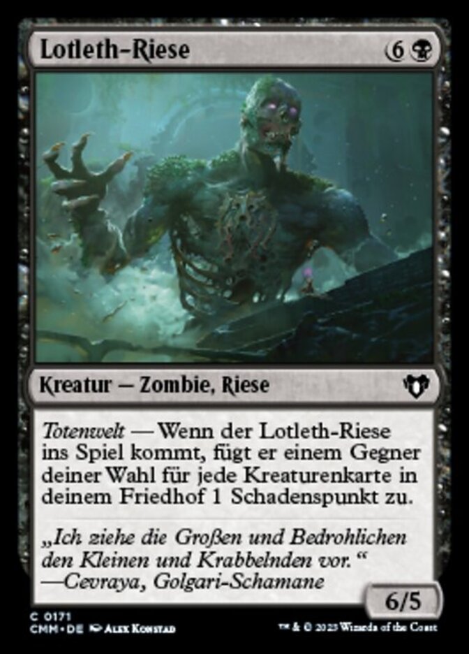 | Rules | Undergrowth — When Lotleth Giant enters the battlefield, it deals 1 damage to target opponent for each creature card in your graveyard. |