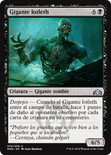 | Rules | Undergrowth — When Lotleth Giant enters the battlefield, it deals 1 damage to target opponent for each creature card in your graveyard. |