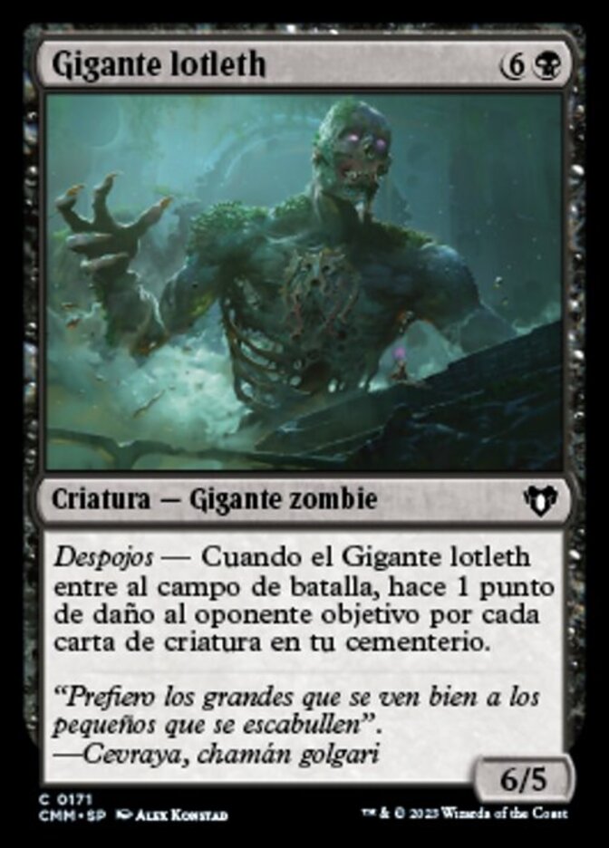 | Rules | Undergrowth — When Lotleth Giant enters the battlefield, it deals 1 damage to target opponent for each creature card in your graveyard. |