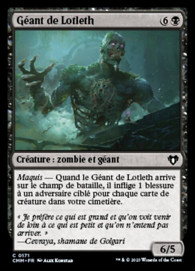 | Rules | Undergrowth — When Lotleth Giant enters the battlefield, it deals 1 damage to target opponent for each creature card in your graveyard. |
