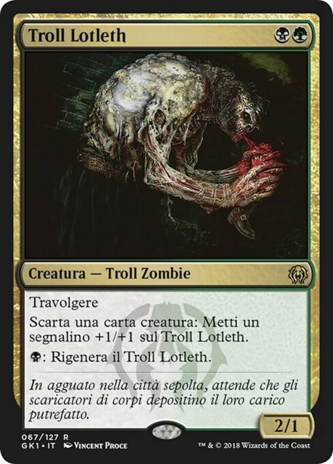 | Rules | Trample Discard a creature card: Put a +1/+1 counter on Lotleth Troll. : Regenerate Lotleth Troll. |