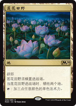 | Rules | Hexproof Lotus Field enters the battlefield tapped. When Lotus Field enters the battlefield, sacrifice two lands. : Add three mana of any one color. |