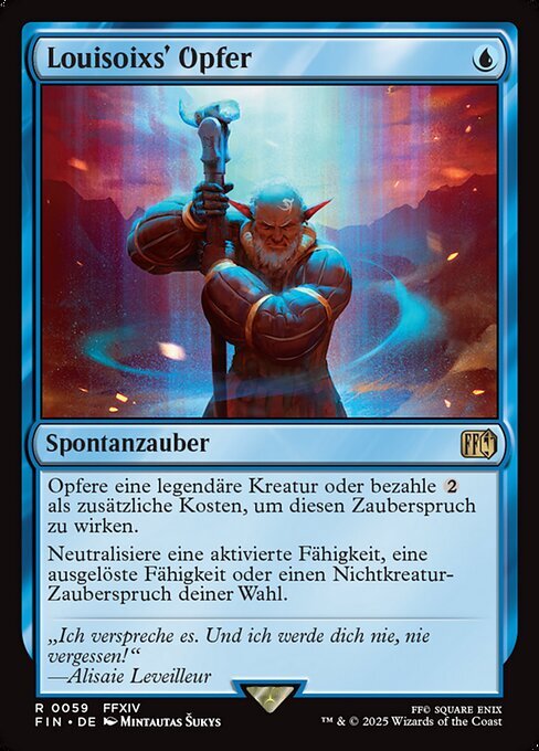 | Rules | As an additional cost to cast this spell, sacrifice a legendary creature or pay . Counter target activated ability, triggered ability, or noncreature spell. |