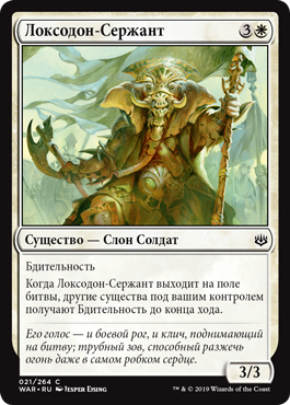 | Rules | Vigilance When Loxodon Sergeant enters the battlefield, other creatures you control gain vigilance until end of turn. |
