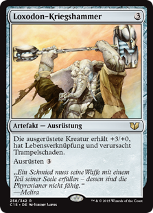 | Rules | Equipped creature gets +3/+0 and has trample and lifelink. Equip |