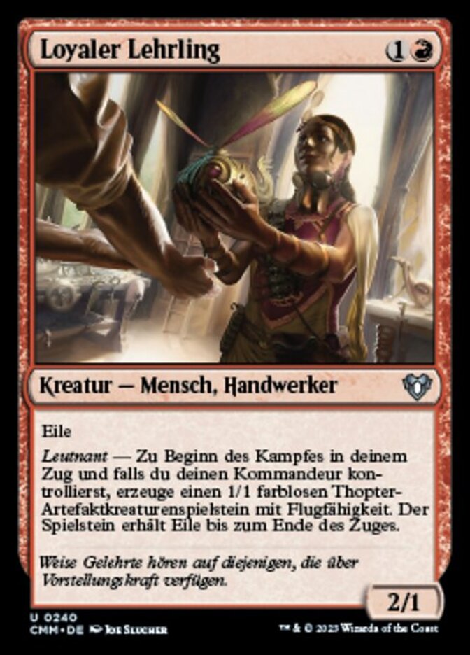 | Rules | Haste Lieutenant — At the beginning of combat on your turn, if you control your commander, create a 1/1 colorless Thopter artifact creature token with flying. That token gains haste until end of turn. |