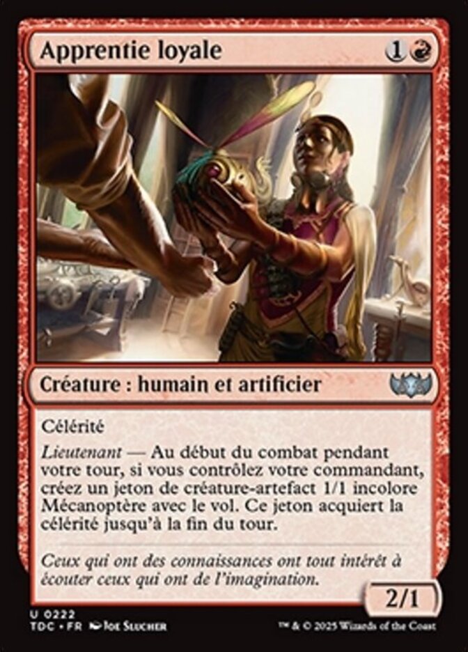 | Rules | Haste Lieutenant — At the beginning of combat on your turn, if you control your commander, create a 1/1 colorless Thopter artifact creature token with flying. That token gains haste until end of turn. |