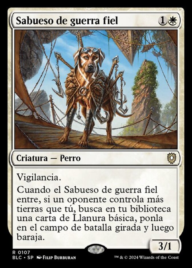 | Rules | Vigilance When Loyal Warhound enters the battlefield, if an opponent controls more lands than you, search your library for a basic Plains card, put it onto the battlefield tapped, then shuffle. |