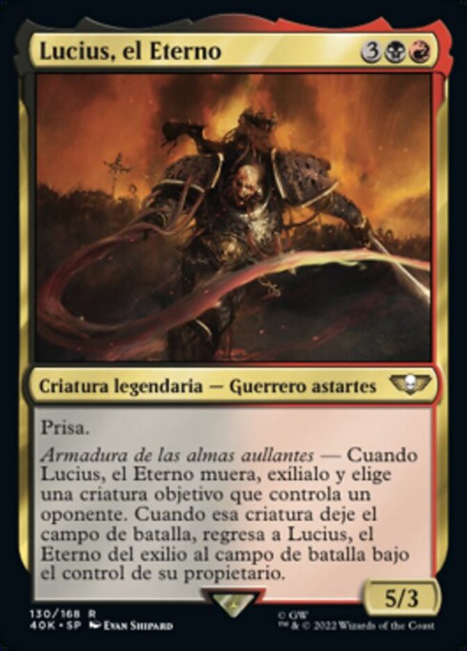 Armor of Shrieking Souls — When Lucius the Eternal dies, exile it and choose target creature an opponent controls. When that creature leaves the battlefield, return Lucius the Eternal from exile to the battlefield under its owner's control.