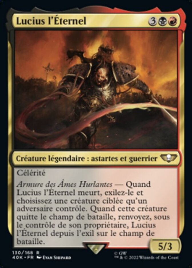 | Rules | Haste Armor of Shrieking Souls — When Lucius the Eternal dies, exile it and choose target creature an opponent controls. When that creature leaves the battlefield, return Lucius the Eternal from exile to the battlefield under its owner's control. |