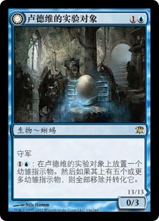 | Rules | Defender : Put a hatchling counter on Ludevic's Test Subject. Then if there are five or more hatchling counters on it, remove all of them and transform it. // Trample |