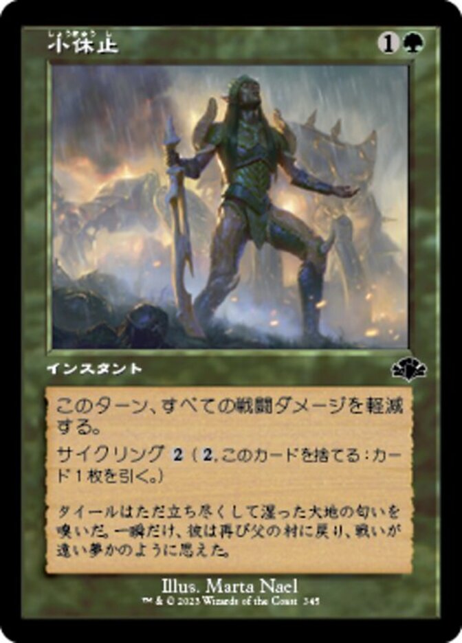 | Rules | Prevent all combat damage that would be dealt this turn. Cycling (, Discard this card: Draw a card.) |