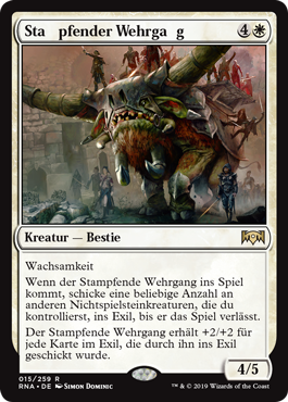 Languages Lumbering Battlement 緩行城垛獸 Stampfender Wehrgang Rempart mugissant Bastione Arrancante のし歩く城塁 굉음을 내는 성가퀴 Ameia Trôpega Неповоротливый Бастион 缓行城垛兽 Destacamento pesado