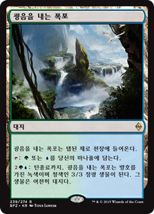 | Rules | Lumbering Falls enters the battlefield tapped. : Add or . : Lumbering Falls becomes a 3/3 green and blue Elemental creature with hexproof until end of turn. It's still a land. |