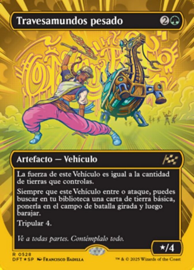 | Rules | This Vehicle's power is equal to the number of lands you control. Whenever this Vehicle enters or attacks, you may search your library for a basic land card, put it onto the battlefield tapped, then shuffle. Crew 4 |