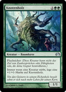 | Rules | Hexproof (This creature can't be the target of spells or abilities your opponents control.) Whenever a creature dies, put a +1/+1 counter on Lumberknot. |