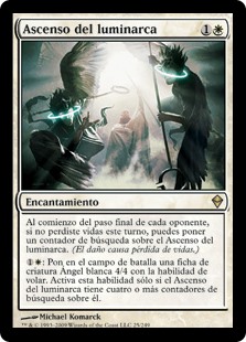| Rules | At the beginning of each opponent's end step, if you didn't lose life this turn, you may put a quest counter on Luminarch Ascension. (Damage causes loss of life.) : Create a 4/4 white Angel creature token with flying. Activate only if Luminarch Ascension has four or more quest counters on it. |