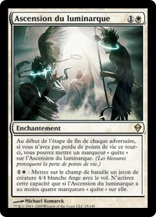 | Rules | At the beginning of each opponent's end step, if you didn't lose life this turn, you may put a quest counter on Luminarch Ascension. (Damage causes loss of life.) : Create a 4/4 white Angel creature token with flying. Activate only if Luminarch Ascension has four or more quest counters on it. |