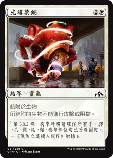 | Rules | Enchant creature Enchanted creature can't attack or block. |