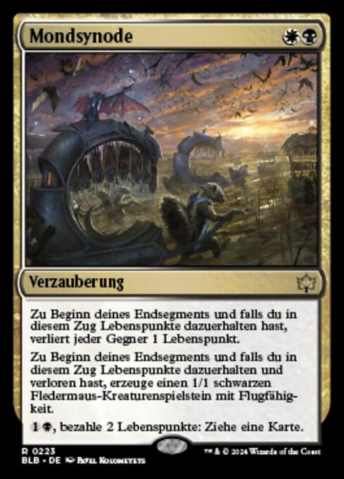 | Rules | At the beginning of your end step, if you gained life this turn, each opponent loses 1 life. At the beginning of your end step, if you gained and lost life this turn, create a 1/1 black Bat creature token with flying. , Pay 2 life: Draw a card. |
