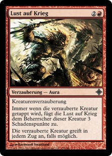 | Rules | Enchant creature Whenever enchanted creature becomes tapped, Lust for War deals 3 damage to that creature's controller. Enchanted creature attacks each combat if able. |