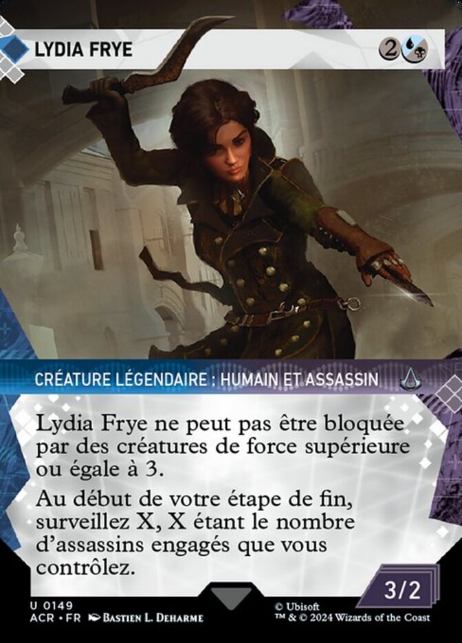 Rules Lydia Frye can't be blocked by creatures with power 3 or greater.