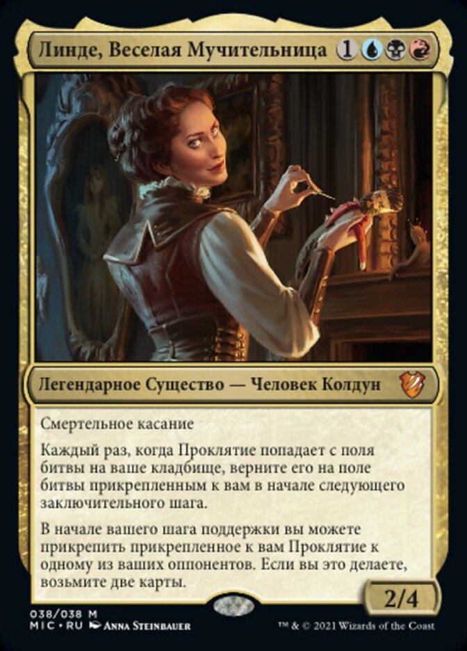 | Rules | Deathtouch Whenever a Curse is put into your graveyard from the battlefield, return it to the battlefield attached to you at the beginning of the next end step. At the beginning of your upkeep, you may attach a Curse attached to you to one of your opponents. If you do, draw two cards. |