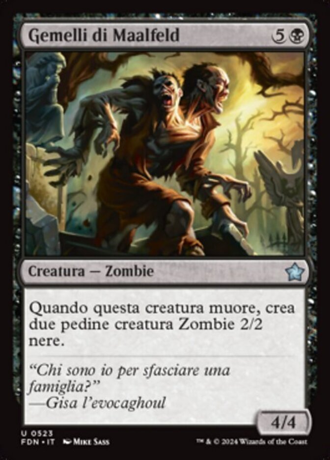 | Rules | When Maalfeld Twins dies, create two 2/2 black Zombie creature tokens. |