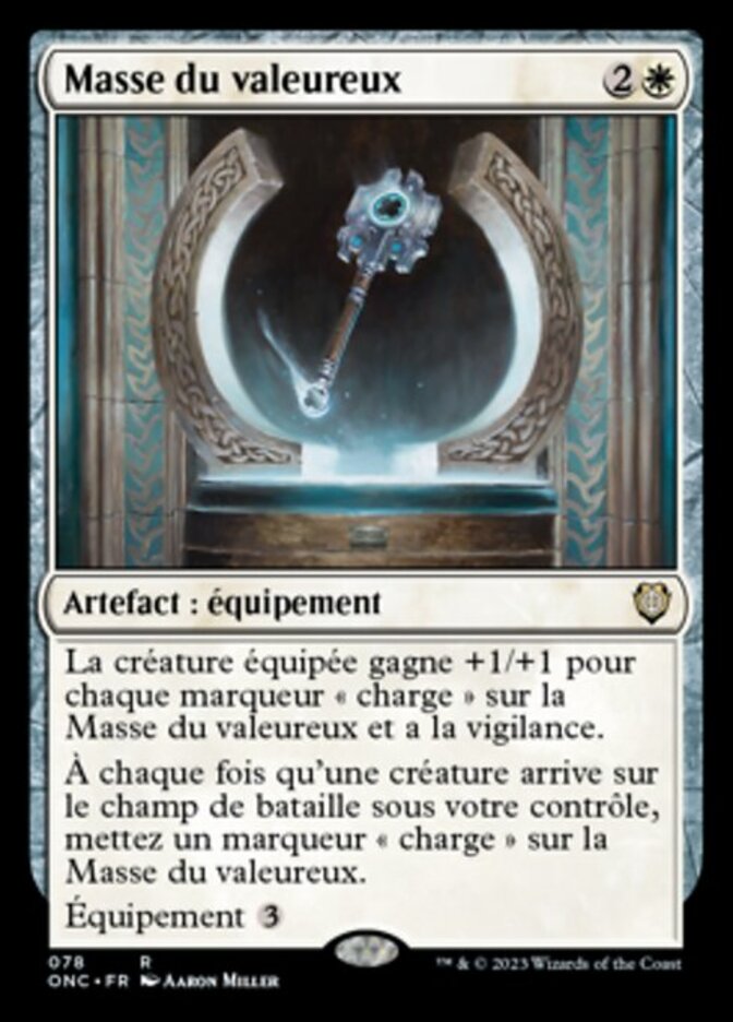 | Rules | Equipped creature gets +1/+1 for each charge counter on Mace of the Valiant and has vigilance. Whenever a creature enters the battlefield under your control, put a charge counter on Mace of the Valiant. Equip |