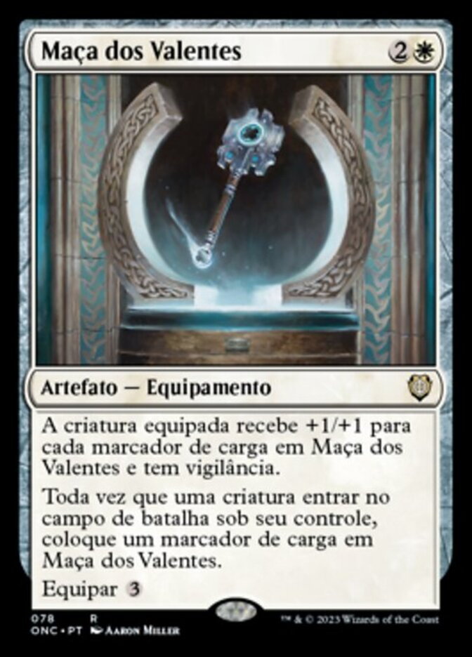 | Rules | Equipped creature gets +1/+1 for each charge counter on Mace of the Valiant and has vigilance. Whenever a creature enters the battlefield under your control, put a charge counter on Mace of the Valiant. Equip |