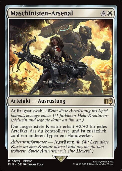 | Rules | Job select (When this Equipment enters, create a 1/1 colorless Hero creature token, then attach this to it.) Equipped creature gets +2/+2 for each artifact you control and is an Artificer in addition to its other types. Machina — Equip (: Attach to target creature you control. Equip only as a sorcery.) |