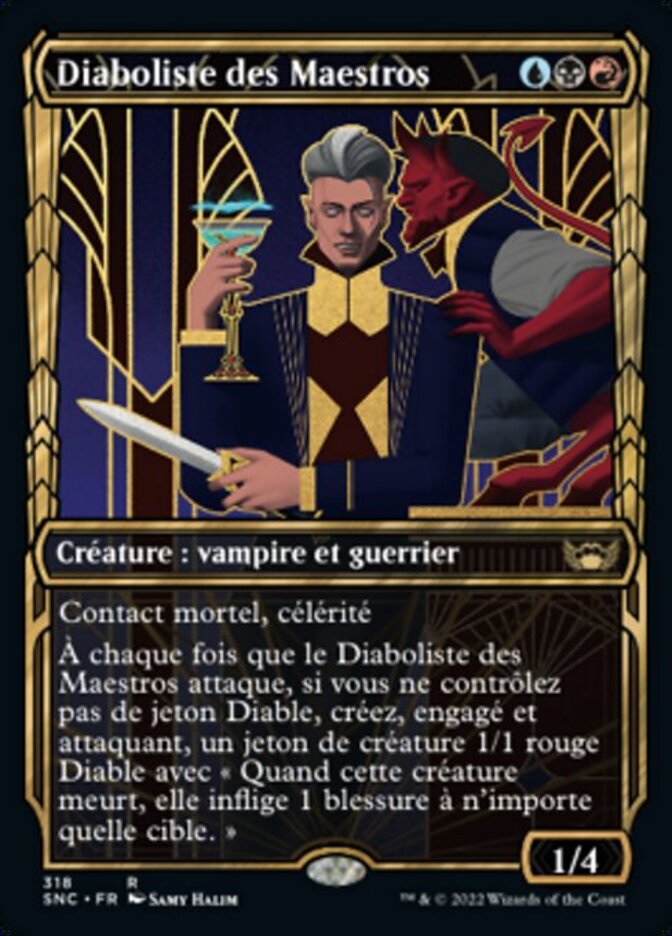 | Rules | Deathtouch, haste Whenever Maestros Diabolist attacks, if you don't control a Devil token, create a tapped and attacking 1/1 red Devil creature token with "When this creature dies, it deals 1 damage to any target." |