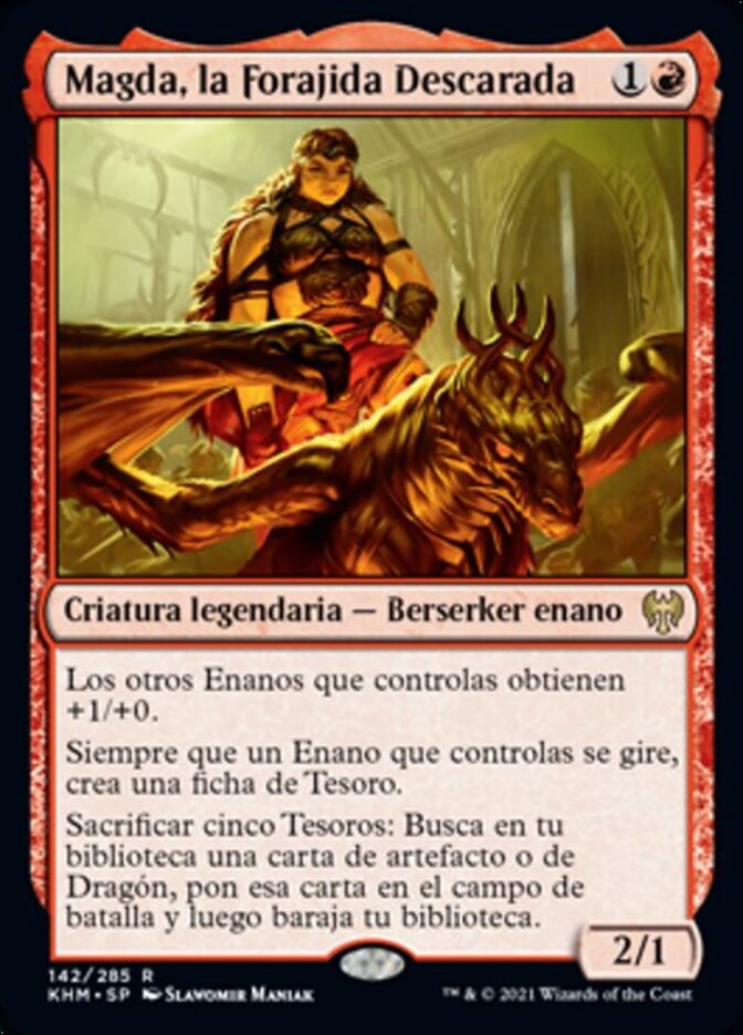 | Rules | Other Dwarves you control get +1/+0. Whenever a Dwarf you control becomes tapped, create a Treasure token. Sacrifice five Treasures: Search your library for an artifact or Dragon card, put that card onto the battlefield, then shuffle. |