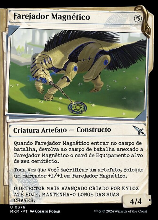 | Rules | When Magnetic Snuffler enters the battlefield, return target Equipment card from your graveyard to the battlefield attached to Magnetic Snuffler. Whenever you sacrifice an artifact, put a +1/+1 counter on Magnetic Snuffler. |