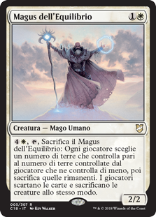| Rules | , , Sacrifice Magus of the Balance: Each player chooses a number of lands they control equal to the number of lands controlled by the player who controls the fewest, then sacrifices the rest. Players discard cards and sacrifice creatures the same way. |