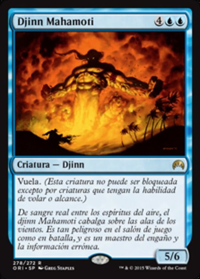 | Flavor | Of royal blood among the spirits of the air, the Mahamoti djinn rides on the wings of the winds. As dangerous in the gambling hall as he is in battle, he is a master of trickery and misdirection. |