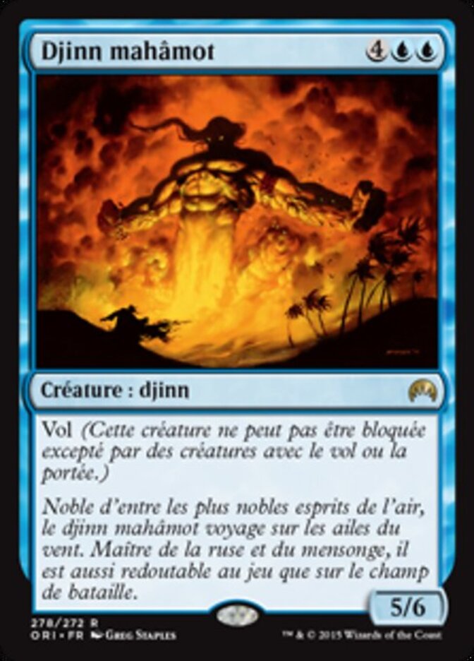 | Flavor | Of royal blood among the spirits of the air, the Mahamoti djinn rides on the wings of the winds. As dangerous in the gambling hall as he is in battle, he is a master of trickery and misdirection. |