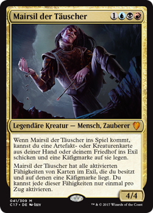 | Rules | When Mairsil, the Pretender enters the battlefield, you may exile an artifact or creature card from your hand or graveyard and put a cage counter on it. Mairsil, the Pretender has all activated abilities of all cards you own in exile with cage counters on them. You may activate each of those abilities only once each turn. |